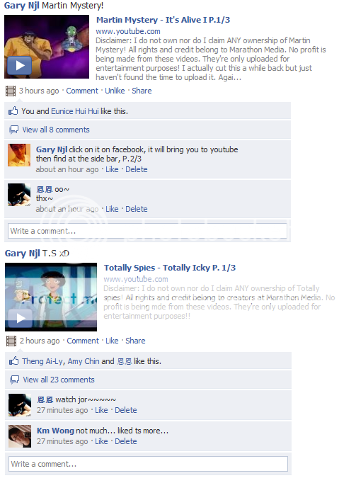 Wonder why all of a sudden I had an urge to watch Martin Mystery and Totally Spies, just when I got back from school today! Maybe it's because I just finished my trial exams today and I have nothing more to do but to think of something to do. Giggles?